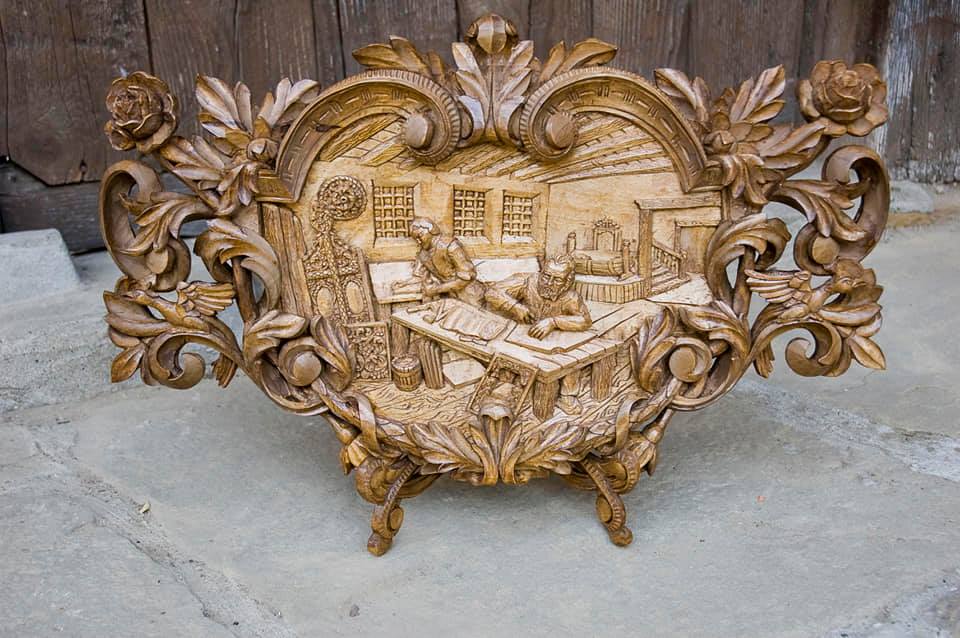 Материали: Използва се предимно орехово дърво, което позволява изключителна прецизност при оформянето на малките детайли.